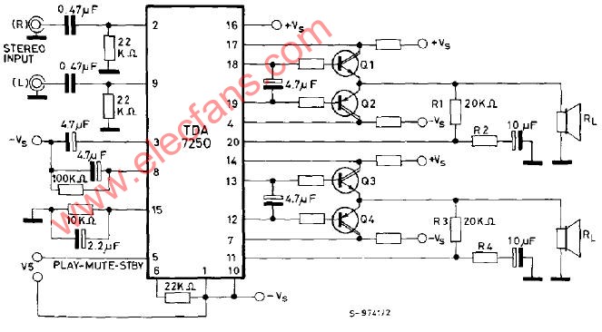 TDA7250立体声音频驱动器电路