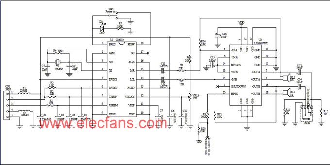 电子发烧友网>电子威廉希尔官方网站 应用>电路原理图>音频电路>USB多媒体音箱电路图