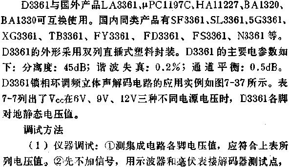 D3301调频立体声解码电路,采用线圈方式解码,它具务组合立体声信号放大,倍频解码,隔离度控制,立体声信号