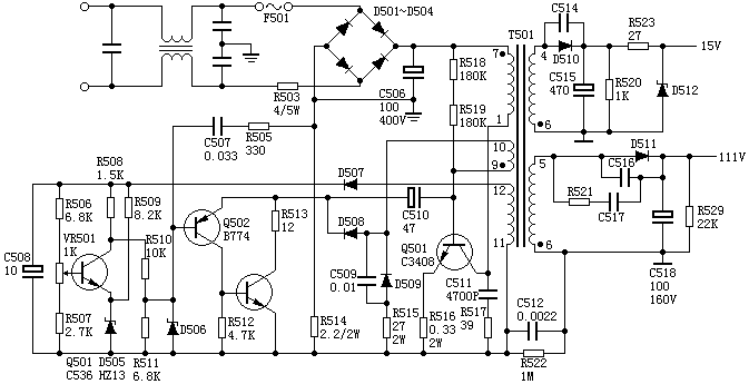 图1所示为220VAC供电的三洋80P机芯电源,它早年曾广泛使用在一些国内电视