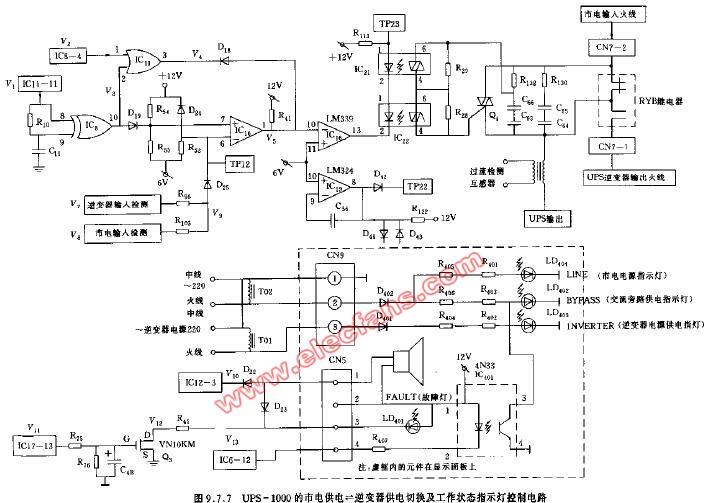 UPS-1000的市电供电逆变供电切换及工作状态指示灯控制电