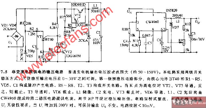 电子发烧友网>电子威廉希尔官方网站 应用>电路原理图>电源>电源电路图>非交流电网供电的稳压电路