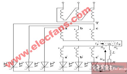 在电解电镀等工业中,常用到低电压大电流(例如几十伏,几千至几万安)可调直流电源。图2-28 为带平衡