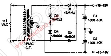 变压器次级中心抽头的全波整流电路。从图2的电路很容易看出,它是两个半波整流电路结合而成的,所以也称为双半波整流电路。变压器的中心抽头为地电位,把交流电压正、负半周分成两部分。正弦交流电正半周时二极管