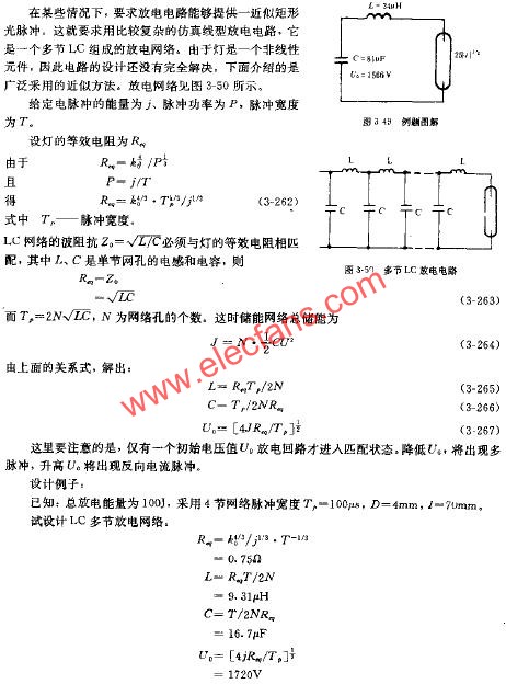 在某些情况下,要求放电电路能够提供一近似矩形光脉冲,这就要求用比较复杂的仿真线型放电电路,它是一个多节LC组成的放电网络。