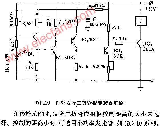 用砷化镓红外发光管制作的报警装置电路图