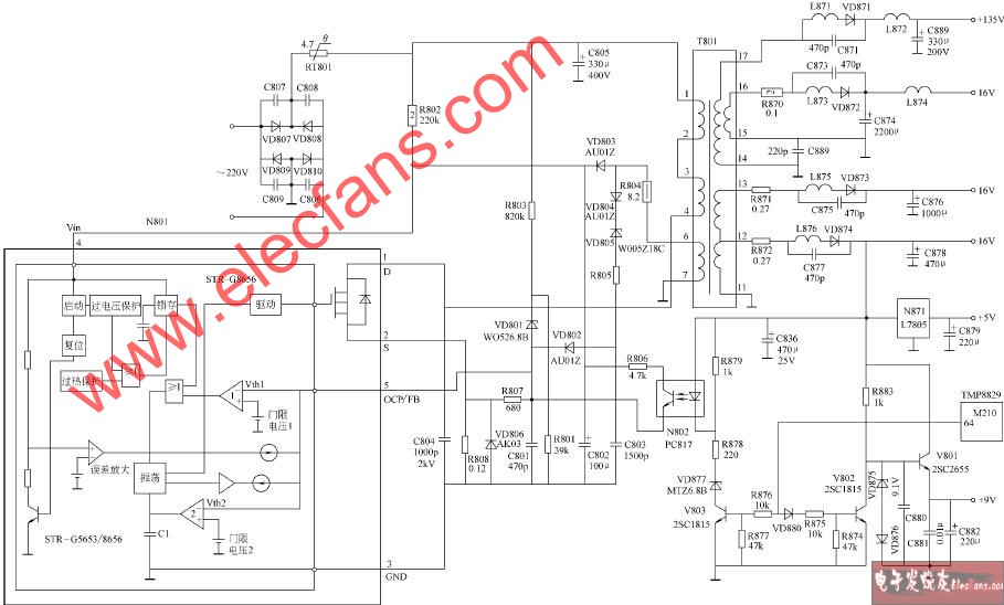 长虹SF2139电视机电路图,有芯片TDA9370。