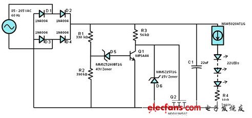 的NUD4001低成本集成电流源可以替代汽车内部照明分立解决方案,在低和高交流或直流电压应用中(6至120V)驱动LED,这样就不再需要单独的组件,明显降低了系统成本和电路板面积。该器件利用交流或直流输入为LED