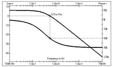 下图是上式RC=2时的幅频特性和相频特性波特图。
