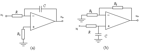 下图a和b是用运算放大器设计的两种一阶Butterworth滤波电路的电路。图a是反相输入一阶低通滤波器,实际上就是一个积分电路,其分析方法与一阶积分电路相同。