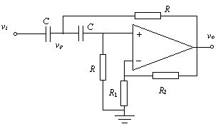 高通滤波器的特点是,只允许高于截止频率的信号通过。下图是二阶Butterworth高通滤波器电路的理想物理模型。