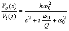 其中k = 1+R1/R2 。令Q=1/(3-k),w0=1/RC,则可以写成