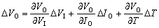 由于输出直流电压VO 随输入直流电压VI(即整流滤波电路的输出电压,其数值可近似认为与交流电源电压成正比)、输出电流IO 和环境温度T(℃)的变动而变动,即输出电压VO = f(V1,IO,T),因而输出电压变化量的一般式可表示为