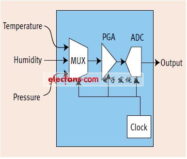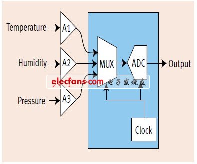 单个高分辨率ADC—单个高分辨率ADC的优点是简单(见图3)。如果使用16位ADC,对于较小动态范围的信号,丢失3、4或5位会使该信号的有效分辨率降至11至14位。然而,对于大多数传感器来说此精度足够了,因为其精度相当于0.05%或更佳。