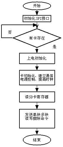 SD卡数据存储软件设计主要包括两部分:SD卡的上电初始化过程和对SD卡的读写操作,其工作步骤如下。