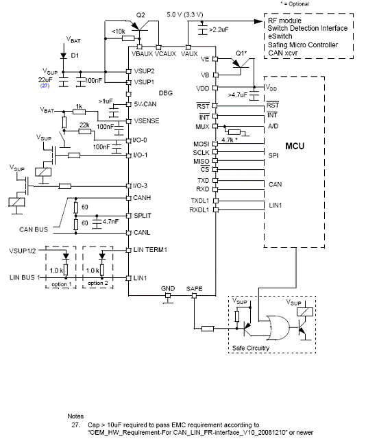 •ISO11898-5 high speed CAN interface compatibility for baud rates of 40 kb/s to 1.0 Mb/s. LIN 2.1 and J2602 LIN interface compatibility