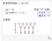 格雷码-〉二进制码(解码):从左边第二位起,将每位与左边一位解码后的值异或,作为该位解码后的值(最左边一位依然不变)。