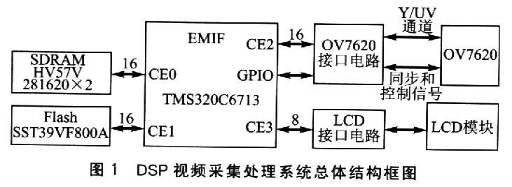 0 本文提出了一种实时图像采集和处理系统的设计方法,该系统以TMS320DM642[1-2]为核心,结合视频解码芯片SAA7115H和OSD FPGA构成实时图像采集和处理系统电路。 1 系统总体设计