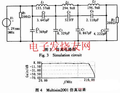 一定的波动;本文设计的滤波器要求带外近端抑制良好(可以用切比雪夫滤波器或椭圆函数滤波器来实现,但是从后面的分析看要使用LC滤波器,而用LC滤波器的话,使用切比雪夫形式电路元件的值过于小,很难实现,这个