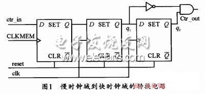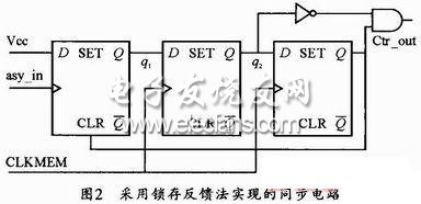 信号。同步电路如图1所示,在快时钟域对控制信号进行两级锁存,由于第二和第三个触发器的输出延迟一个快时钟周期,将它们做一个逻辑运算,就可以得到有效一个快时钟周期的控制信号。2 锁存反馈法锁定反馈法主要