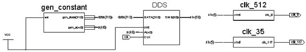 --- 其中gen_constant为生成控制字的模块,clk_512和clk_35为分频模块。