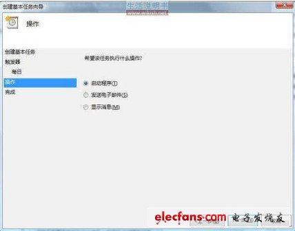 5. 接下来会让你选择以什么方式运行这个任务,如果是要关机,那么选择“启劢程序”后,点击“下一步”。