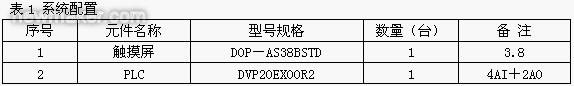 (1)系统原理设计:系统原理设计如图1所示。系统由台达PLC建构主控制器,通过RS-485总线与台达触摸屏人机界面构成管理操作和打印记录系统。系统硬件配置如表1所示。利用台达人机界面丰富的通讯口功能,可以提供给用户3个COM口,方便与外围工控设备通讯联机。