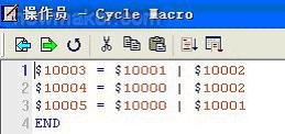 操作员必须通过口令才能登陆控制系统,操作员1~3具有不同的响应级别,级别依次降低,密码级别操作员1>操作员2>操作员3,即使用操作员1密码可以登陆操作员2和操作员3。三个按钮互相锁存,按下其中一个按钮后,其他两个按钮均无效,通过宏指令实现。操作员画面CYCLE宏如下所示: