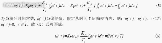(6)式表明u(τ)是e(τ)与T的函数。e(τ)为有限变量,其积分值的大小与0到T这段时间的变化有关。当流量与实测流量偏差为0时,系统就稳定在与设定流量相适应的数值上。将(6)式离散化,得到数字控制器的差分方程: