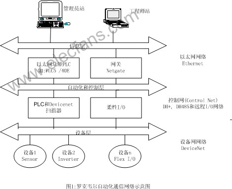 实现了从信息层(Ethernet)到控制层(ControlNet)和现场层(DeviceNet)的无缝连接。如图1所示.