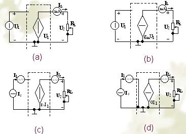 (3) 流控电压源(CCVS):U2=f(I1),rm=U2/I1 称为转移电阻。
