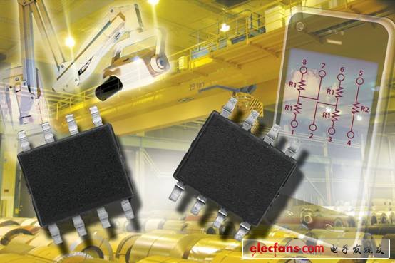日前,Vishay Intertechnology, Inc.(NYSE 股市代号:VSH)宣布,发布新系列薄膜材料的模压双列直插电阻分压器---ORNV系列。分压器具有±0.05%的严格分压比容差,在2000小时和+70℃条件下的分压比稳定率特性(ΔR)为±0.015%,还具有±5PPM/ºC的严格TCR跟踪。ORNV系列中的器件由5个电阻组成4mm x 5mm的8引脚表面贴装网络,包括2个分压器和1个参考电阻,具有比分立式SMT芯片更高的精度。