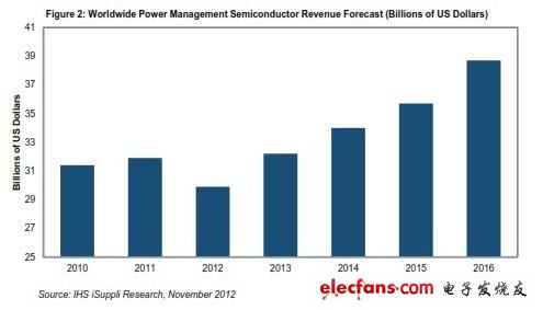 今年电源管理半导体营业收入将比2012年增长4.8%,而去年则是下降8.2%。