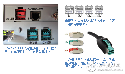 PoweredUSB在电压、电流上均??有所提升,电压除原有5V外增加12V、24V(亦有业者采9V、25V),电流增至3,000mA,最高可至6,000mA,整体而言能将供电瓦数增至30、72、144瓦。