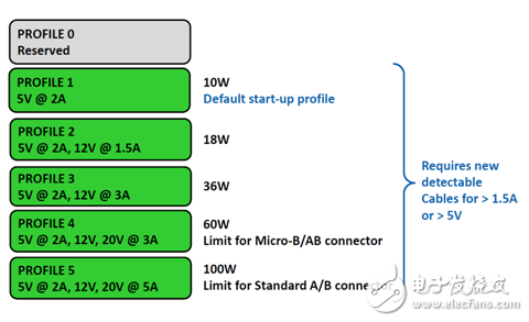 有鉴于业界对USB供电需求的呼声愈来愈高,USB-IF订立出USB PD标准,将供电能力正式扩展至数十瓦等级,USB PD提出5种新的供电层次,分别为10瓦、18瓦、36瓦、60瓦、100瓦。