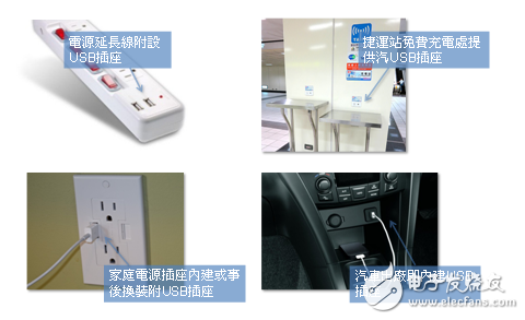 近年来,有智能型手机、平板电脑的人,愈来愈常到处找寻Micro-USB缆线、USB电源配接器(俗称变压器,以下以此简称),因为他们需要替手机、平板充电,甚至在捷运站提供的充电桌,桌附近的墙面不仅提供一般110V电力插座,也顺便提供USB电力插座,想充电者可以省去待USB电源配接器,只需携带Micro-USB缆线(若为iDevice则携带Lightning缆线)即可充电。另外,也有业者新推行的电源延长线插座,除原有的110V插座外也随附USB插座,或者已??有建商在施工上也在110V插座随附USB插座,以及新款汽车也内建USB插座。