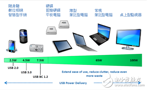 USB供电能力一旦可达60瓦、100瓦,下一步可能实现的是印表机、扫瞄器、桌上型监视器、乃至笔记型电脑(DIGITIMES Research抽样,纯就变压器规格而言,常规笔电仍需60瓦以上电能,但可低于100瓦,薄型省电机种可低于60瓦)等,均可改以USB埠供电,此意味着未来换笔电、换印表机等,不用再随同丢弃变压器,而是可以沿用,以减少电子垃圾。