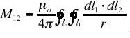 ,L1、L2为两回路长度,m0为真空磁导率,r为两回路导线段距离。因此增大r和减小回路面积都能减小M12。