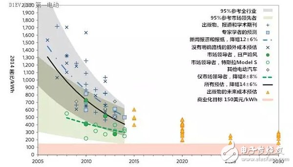 据The Carbon Brief报道,早在2013年,国际能源属(IEA)曾经预测,到2020年,电动汽车电池成本将下降到300美元/千瓦时。然而,NatureClimate Change的研究人员认为,电动汽车行业可能已经提前达到了这一目标,2007年至2014年之间,全行业平均成本从1000美元/千瓦时下降到410 美元/千瓦时,平均每年下降14%。某些领先企业,例如日产和特斯拉已经跨越了IEA预测的300美元/千瓦时屏障,去年起电池成本很可能已经更便宜,价格可能比最近许多同行的评估低2至4倍,每年降幅为8%。