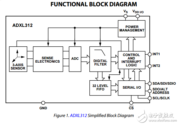 - ADXL312:3轴、±1.5 g/±3 g/±6 g/±12 g数字加速度计