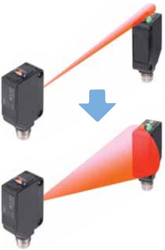 E3Z激系统有一个独特的模块结构可更改光点直径,如下例所示。