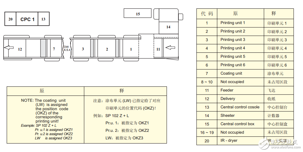 印版边缘至起印位置的距离: 43 mm/52 mm (1.69/2.05 in) 预置增强飞达: 1,320 mm (51.97 in) 预置收纸装置: 1,205 mm (47.44 in) 预置增强收纸装置: 1,295 mm (50.98 in)