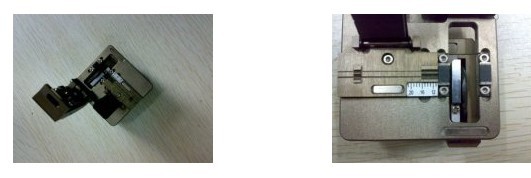 二、切线:用的是光纤切线刀,一个类似于小盒子的东西,首先把刀盖打开,把刀片拨至靠近自己的一侧,把光纤放置在小盒中,注意把有涂覆层跟没有涂覆层的交接点放置在切线刀刻度的18—20厘米处(为了放置在光纤熔接机时足够长)。扣上盖子,拨动刀片。注意轻拿轻放