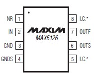 The MAX6126 is an ultra-low-noise, high-precision, lowdropout voltage reference. This family of voltage references feature curvature-correction circuitry and high-stability, laser-trimmed, thin-film resistors that result in 3ppm/°C (max) temperature coefficients and an excellent ±0.02% (max) initial accuracy. The proprietary low-noise reference architecture produces a low flicker noise of 1.3μVP-P and wideband noise as low as 60nV/√Hz (2.048V output) without the increased supply current usually found in low-noise references.
