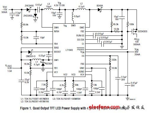 - DN349-四路输出开关转换器为大型TFT LCD面板供电