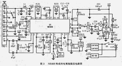高性能、全封闭结构,其型号是MB4A605F型。 变换采用MC34063芯片制作,因它带负载能力较强。 立体声功放IC选用LAG668FT芯片,该芯片具有直流音量控制功能且外围电路简单。图2中的天线