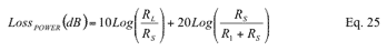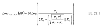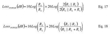 和R2。最小插入损耗其中:电阻器R1位于较大阻抗一侧,电阻器R2位于较小阻抗一侧,在我们上面的示例中,电阻分别为75Ω和50Ω。因此,在源和负载之间连接的L衰减器的最小插入损耗以分贝为单位给出:最小衰减