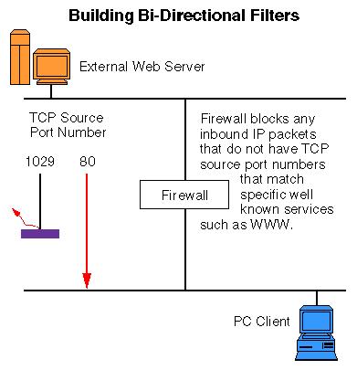 这套机制还不能算是无懈可击,简单地举个例子,假设我们有台内部Web服务器,那么端口80就不得不被打开以便外部请求可以进入网络。还有,对UDP包而言就没法监视ACK位了,因为UDP包压根就没有ACK位。还有一些TCP应用程序,比如FTP,连接就必须由这些服务器程序自己发起。