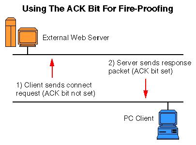 举个例子,PC向远端的Web服务器发起一个连接,它生成一个没有设置ACK位的连接请求包。当服务器响应该请求时,服务器就发回一个设置了ACK位的数据包,同时在包里标记从客户机所收到的字节数。然后客户机就用自己的响应包再响应该数据包,这个数据包也设置了ACK位并标记了从服务器收到的字节数。通过监视ACK位,我们就可以将进入网络的数据限制在响应包的范围之内。于是,远程系统根本无法发起TCP连接但却能响应收到的数据包了。