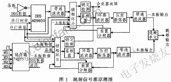 设备开发预研,综合测试系统研制的瓶颈。本设计正是某机载电台综合检测仪的一部分,为其提供一个高稳定度的跳频信号源。